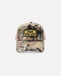 The Driver Cap in Washed Green Real Tree brings the trucker into Epokhe’s world. A cotton–poly twill front with mesh back, snapback closure, and washed finish for a vintage edge