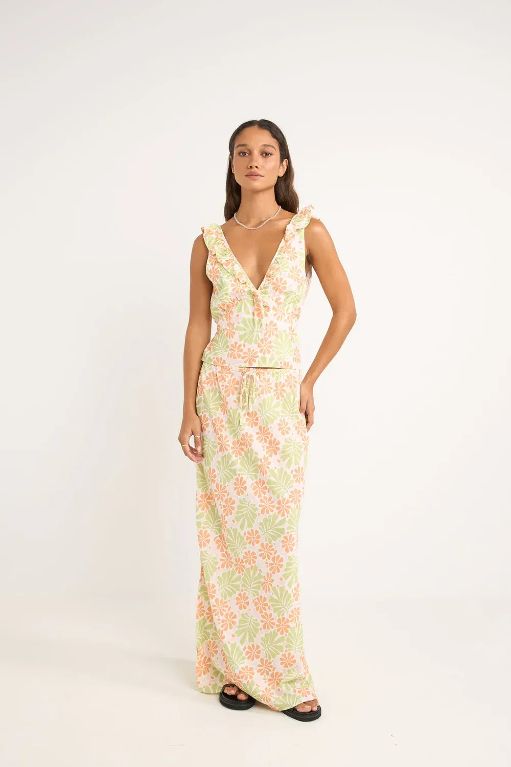 Unleash your fun and flirty side with the Marloe Bias Midi Skirt. Made from high-quality materials, this skirt features a playful, bias cut that adds a touch of whimsy to your wardrobe. Pair it with the matching Marloe Ruffle Top for a complete and stylish look. (Top sold separately.)