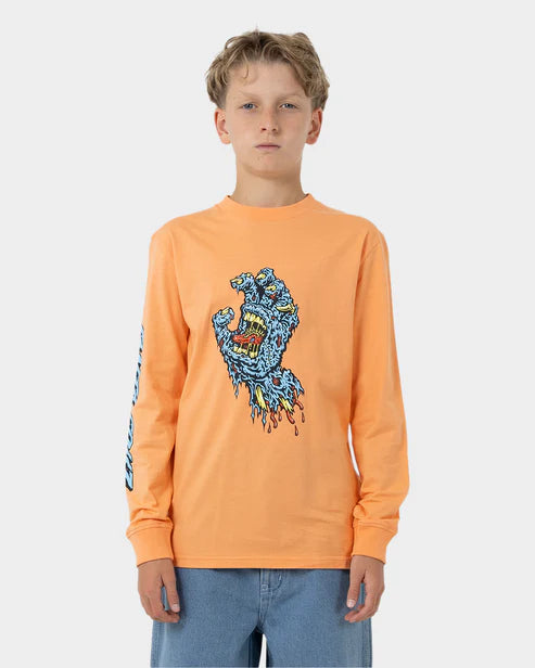 Boys Santa Cruz regular fit long sleeve t-shirt featuring screen print of the SC Decaying Hand Strip artwork.