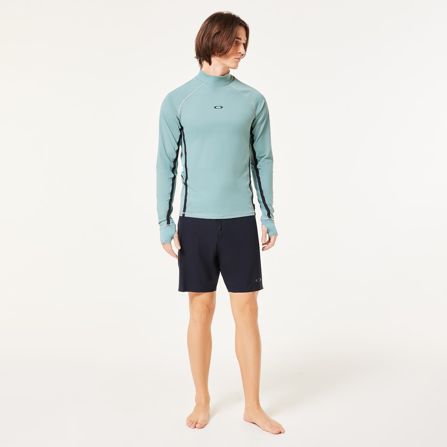 These knee-length shorts are perfect for dedicated boarders keen to hone their skills, but also those that just love the surfer style. Made from a quick-drying blend of recycled nylon and spandex, guaranteeing maximum comfort and flexibility in and out of the water, they feature a distinctive fixed waistband paired with tubular drawcord and branded tips. The minimalist front is decorated with the Oakley Ellipse print logo, while on the other side a classy matte logo sits over the waterproof zip of the back pocket, also fitted with a practical elastic loop. Function and form rolled into one.