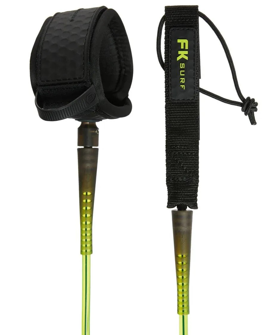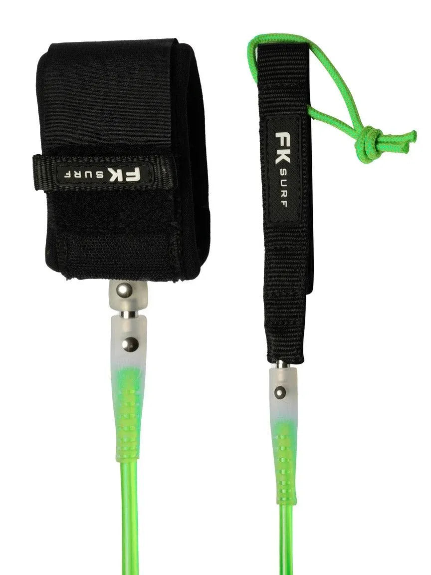 FK Surf leashes are made using the finest urethanes for the ultimate strength and better memory. They feature marine grade swivels and fasteners, lightweight neoprene and webbings that are all purpose built to give a strong, lightweight and super functional leash that will stand the test of time.