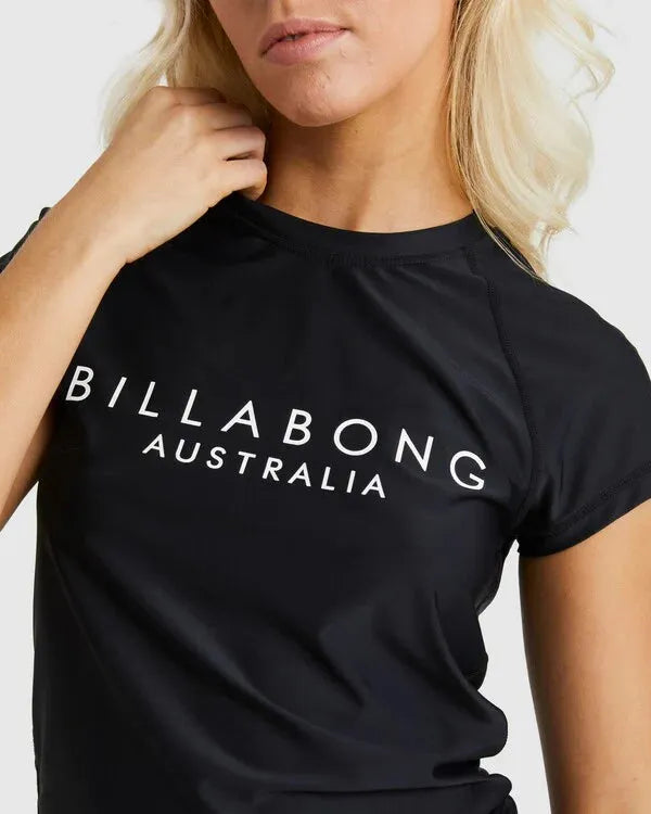 The Serenity Short sleeve rashguard is a great summer essential and a trusted piece to have in your beach bag. Features short sleeves and a Billabong logo across the front chest.
