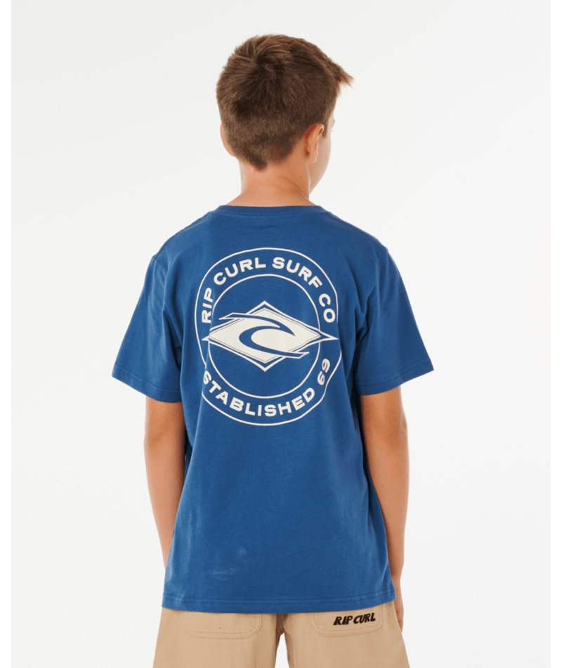 Keeping it simple in the Staple Tee, made from a soft cotton jersey and finished off with a large featured contrasting back print. This one will be on rotation in your groms wardrobe.